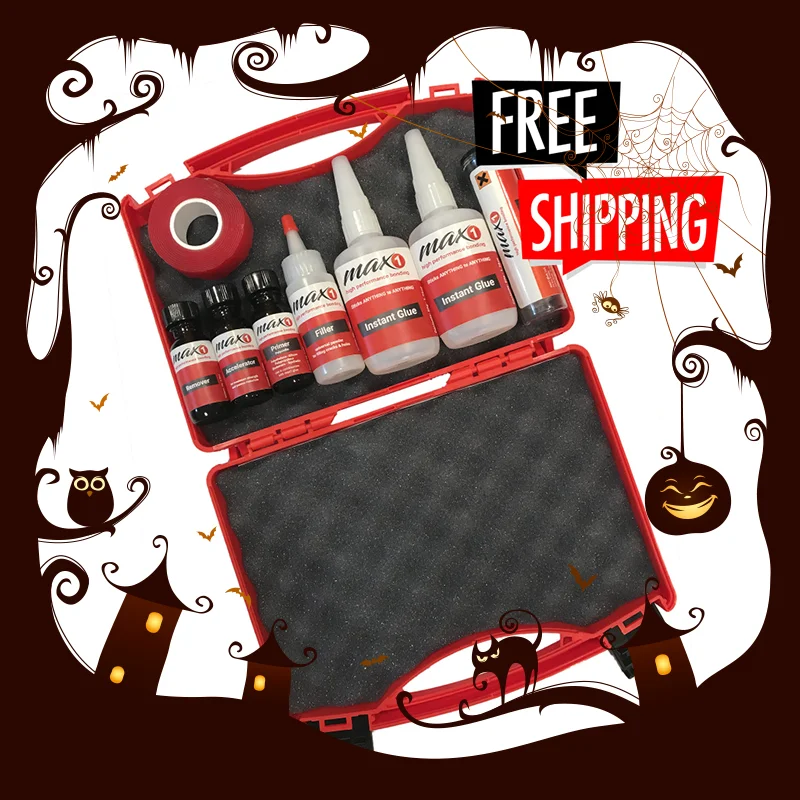 The ideal adhesive collection for any Type of Business, Office, Lab, Industry or at Home. With the Max 1 Handyman Kit you will have everything on Hand for any type of breaks small or large, whatever the materials to bond or repair might be! It includes two Bottles of Max1 Glue, one Accelerator, Filler, Remover and Primer. A double sided Tape (up to 30 lbs) and our super strong Titanium Epoxy.